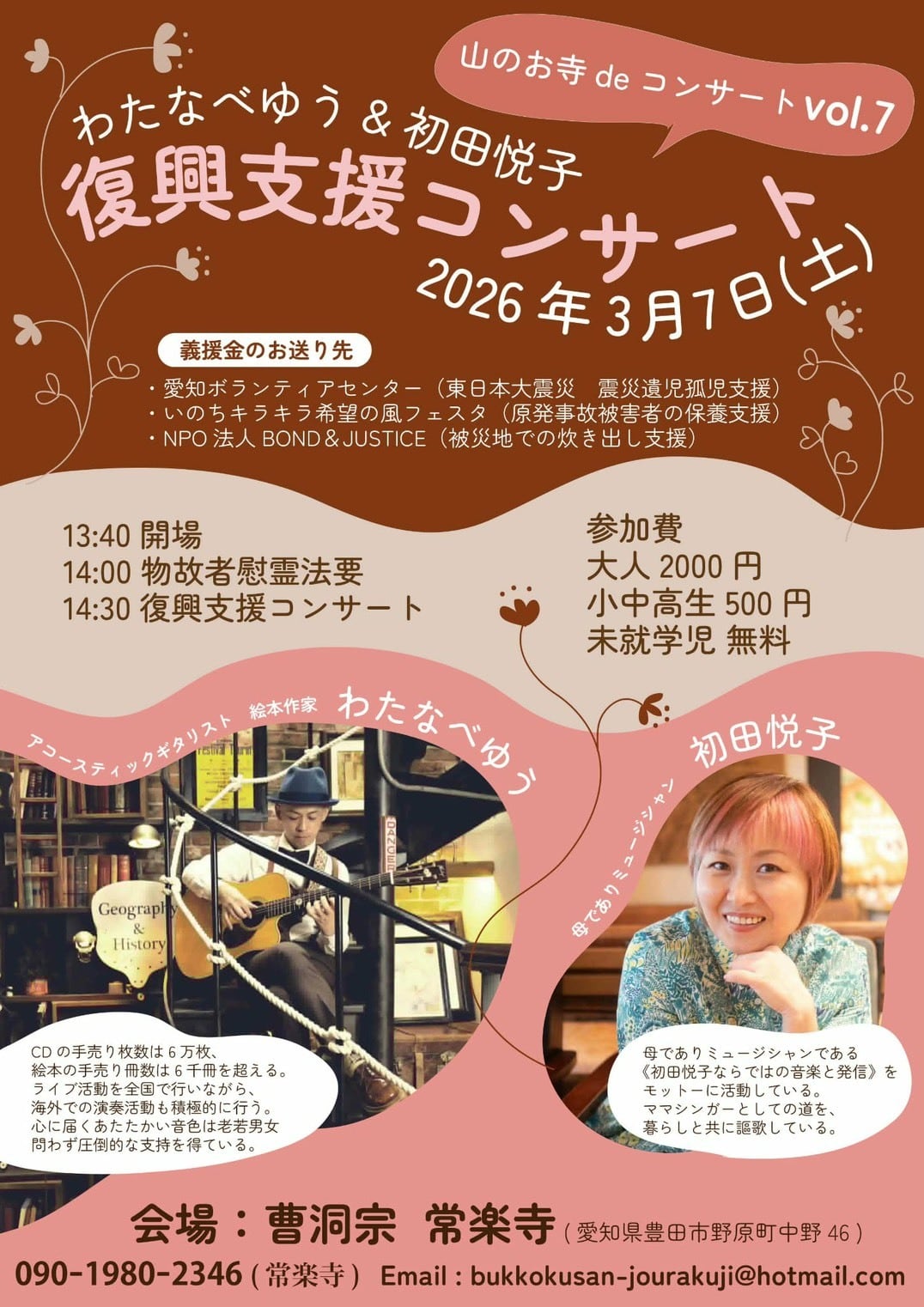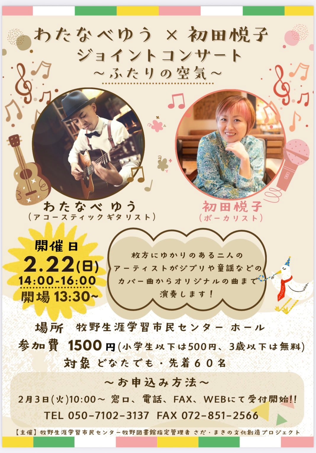 初田悦子デビュー15周年記念CDアルバム 『きみと見つけたこの世界で』 収録曲 1. キッチン music by 内山光知子 2. OKAGE☆Samba music by わたなべゆう 3. 於母影法師 music by わたなべゆう 4. 15年後のきみのママより music by 鎌田雅人 5. 日日是幸日 music by 広沢タダシ 6. 祈り music by 広沢タダシ 7. 玉響 music by 鎌田雅人 8. The Beat loose music by わたなべゆう 9. 7.5.3 music by わたなべゆう 10. 主人公 music by 天然デンネンズ 11. 解き放て愛のうた music by 柳沢耕平 12. きみと見つけたこの世界で music by わたなべゆう 13. ねむれないで music by 柳沢耕平 ⭐︎ブックレットの中に、曲毎のデータをダウンロードできるQRコードを付けてありますので、 ブックレットを見ながら、スマホやPCでも音楽を楽しんでいただけます♪